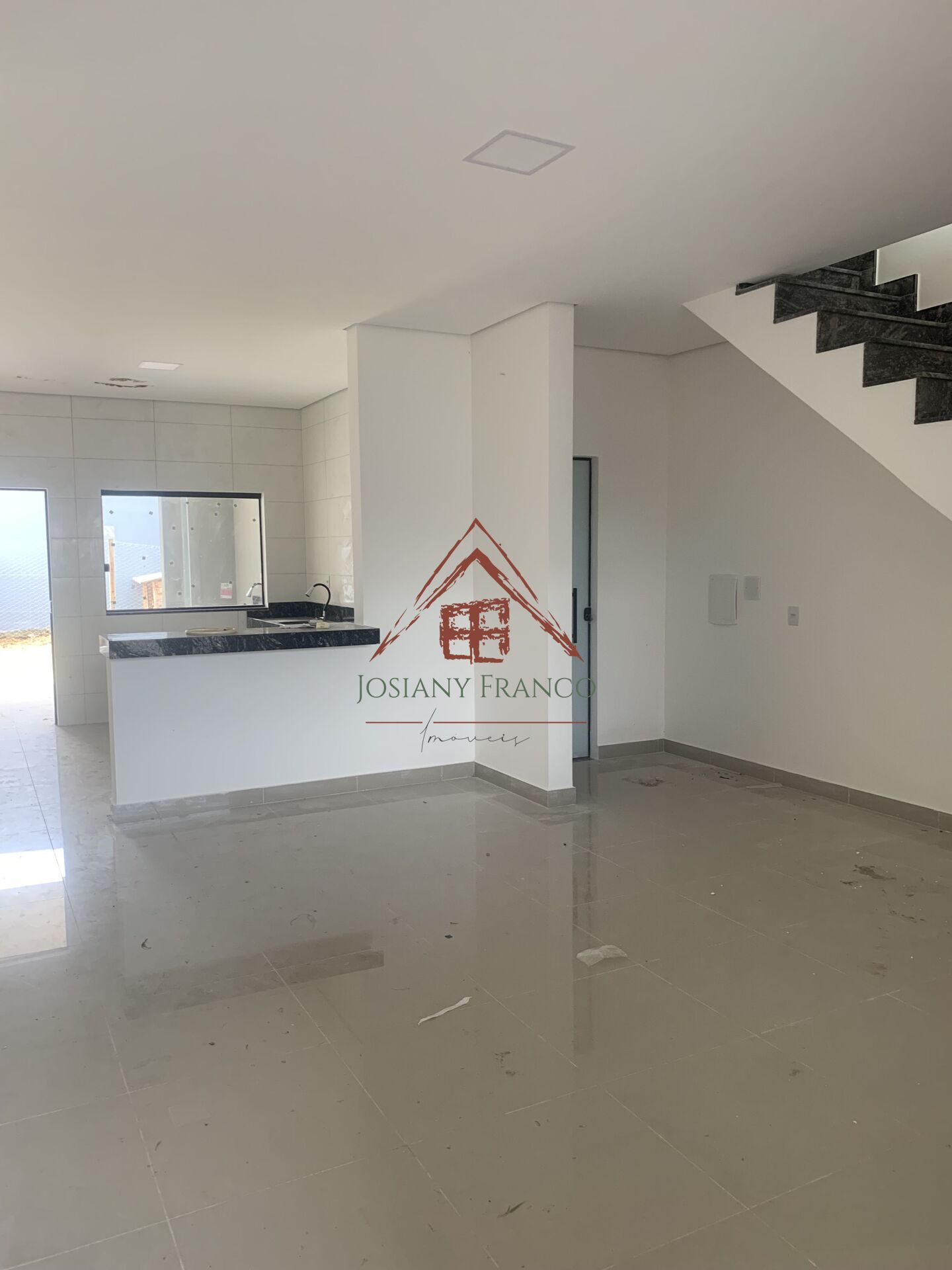SALA, COZINHA COM BANCADA, AREA DE LAVANDERIA COBERTA, QUINTAL. SEGUNDO ANDAR: TRES QUARTOS, SENDO UM COM SACADA E CLOSET, E UM COM SACADA SEM CLOSET. OBS: Possibilidade em fazer um banheiro suite. GARAGEM PARA DOIS CARROS.